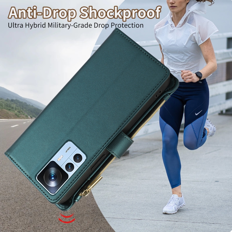 Funda de Cuero Tipo Billetera con Cremallera Rombal para Xiaomi 12T/12T Pro (Verde)