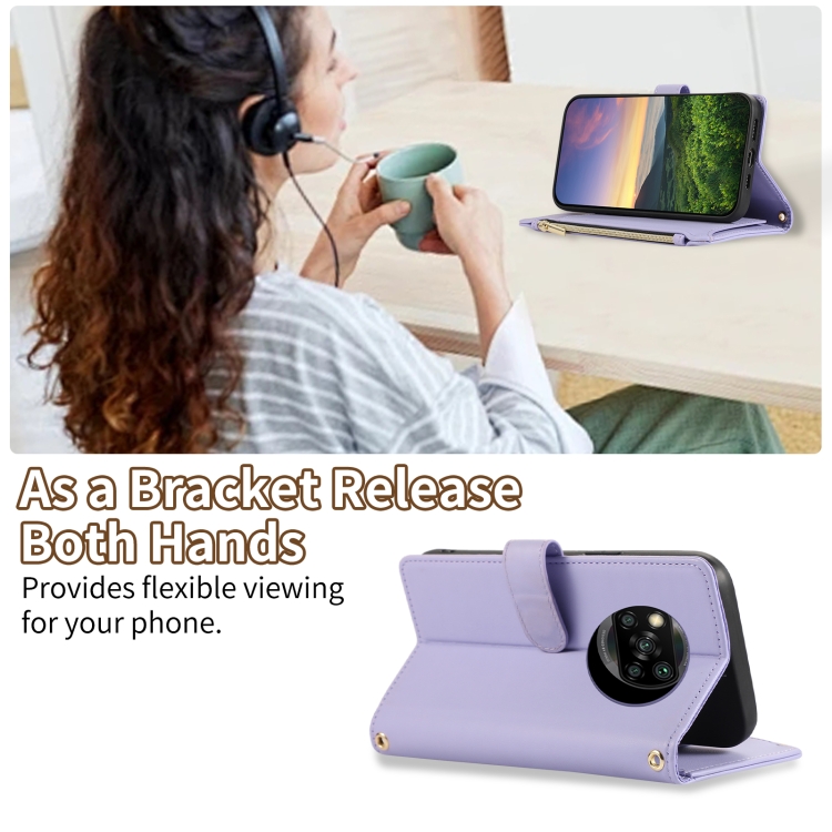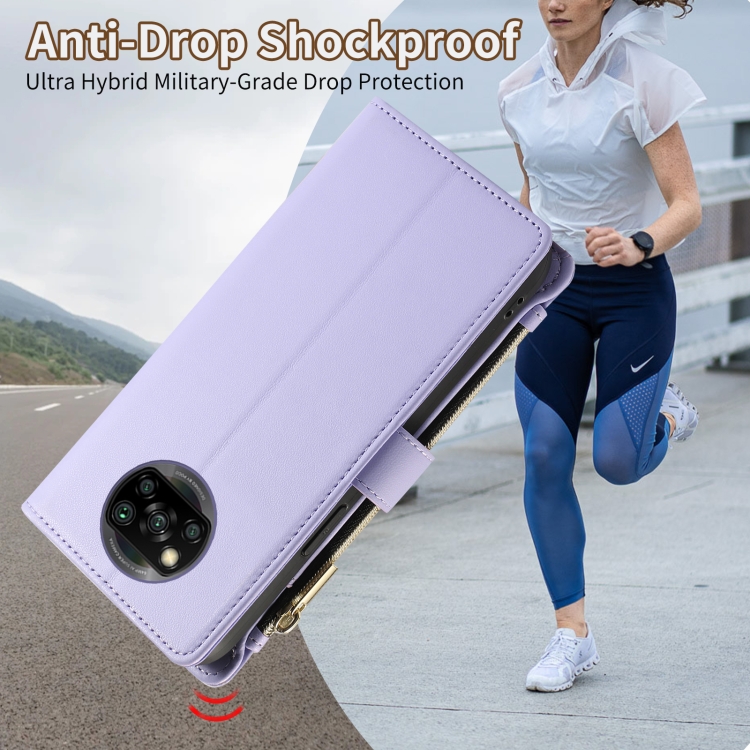 Funda de Cuero Tipo Billetera con Cremallera Rombal para Xiaomi Poco X3 Nfc (Morado)
