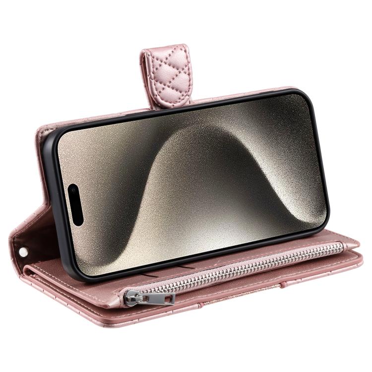 Funda de cuero tipo billetera con cremallera y diseño de celosía brillante para Motorola Edge 60 Pro (oro rosa)