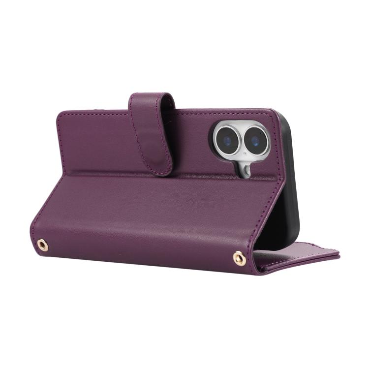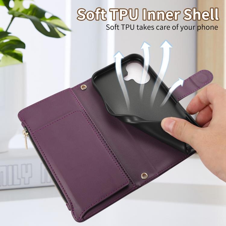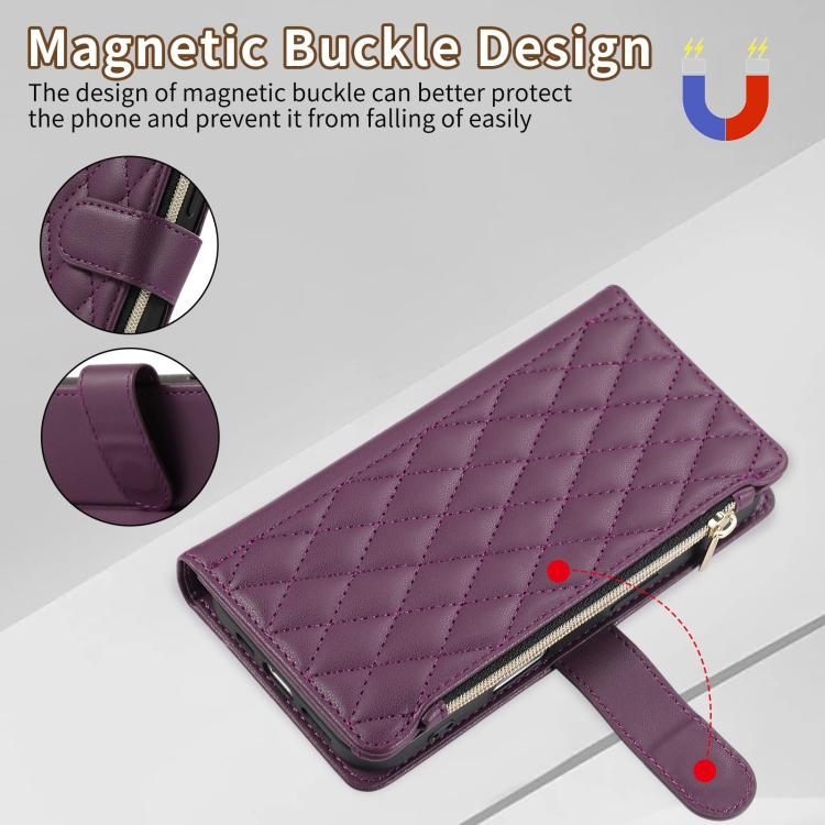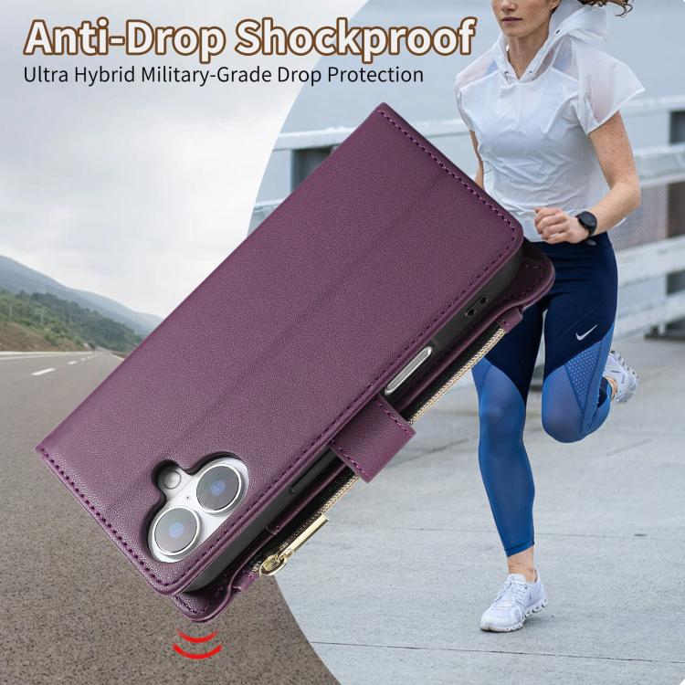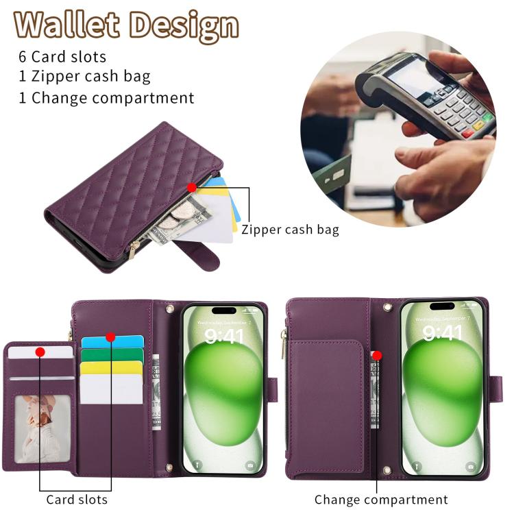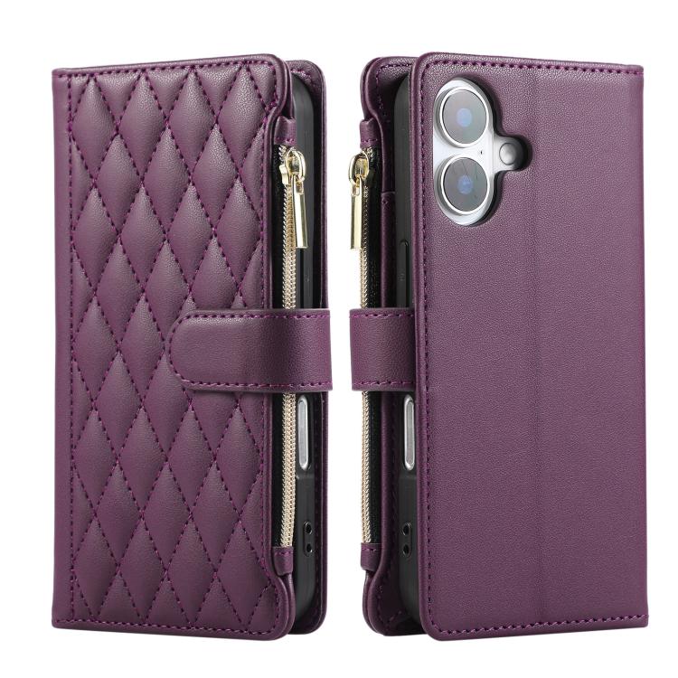 Funda tipo billetera Cuero iPhone 16 Plus Cremallera Diseño Rombal (Morado Oscuro)