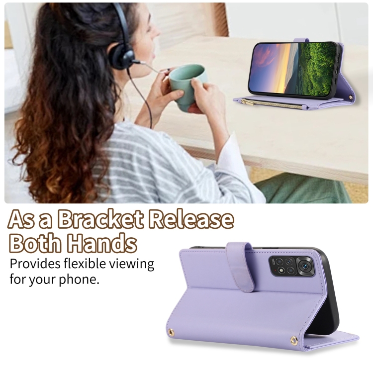 Funda de Cuero Tipo Billetera con Cremallera y Diseño Rombal para Redmi Note 11S (Morado)