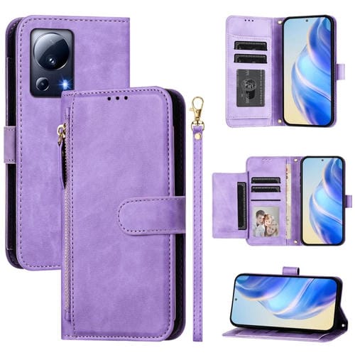 Funda de Cuero Tipo Billetera con Cremallera y Ranuras para Múltiples Tarjetas para Xiaomi 13 Lite/Civi 2 (Morado)