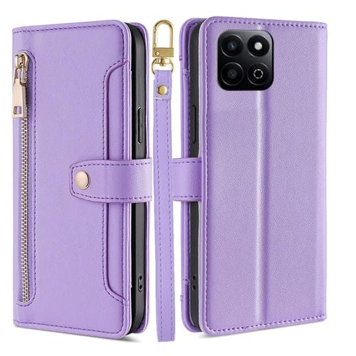 Funda de Cuero tipo Billetera con Cremallera y Textura de Oveja para Honor Play 60 Plus (Morado)