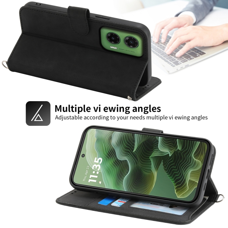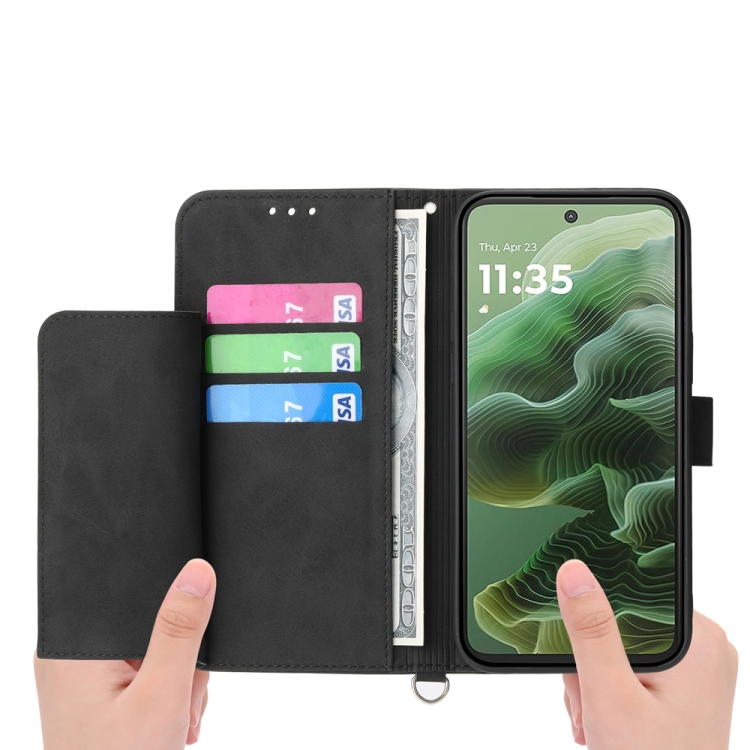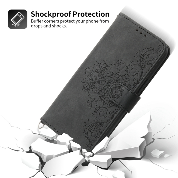 Funda de Cuero Tipo Billetera Motorola Moto G55 con Flores en Relieve (Negro)