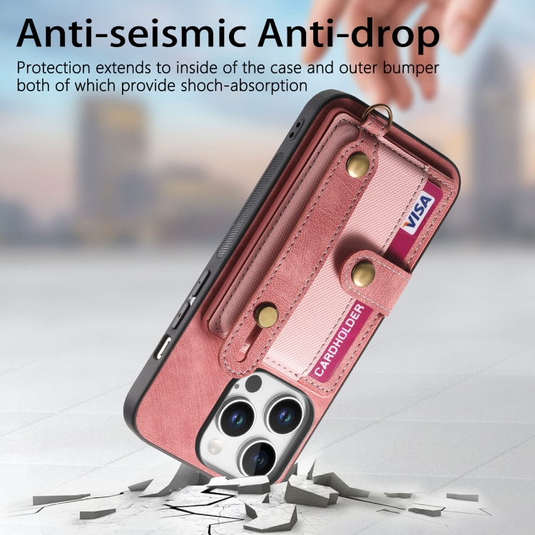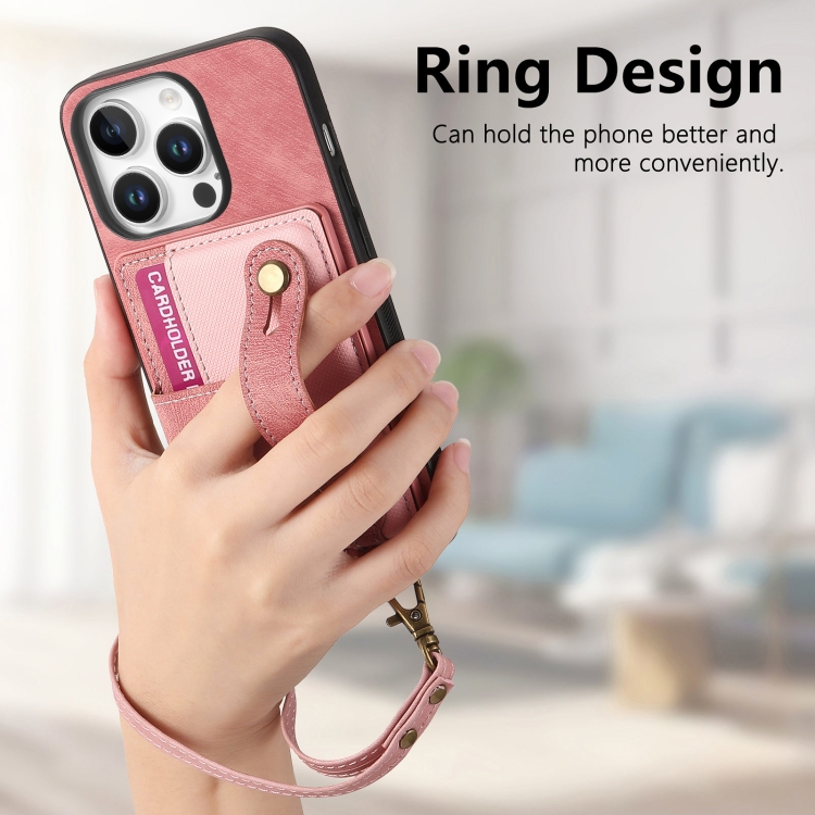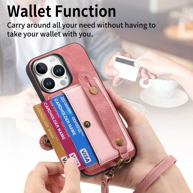 Funda Tipo Billetera Cuero con Diseño Retro Pulsera Cruzada para iPhone 16 Pro Max (Rosa)