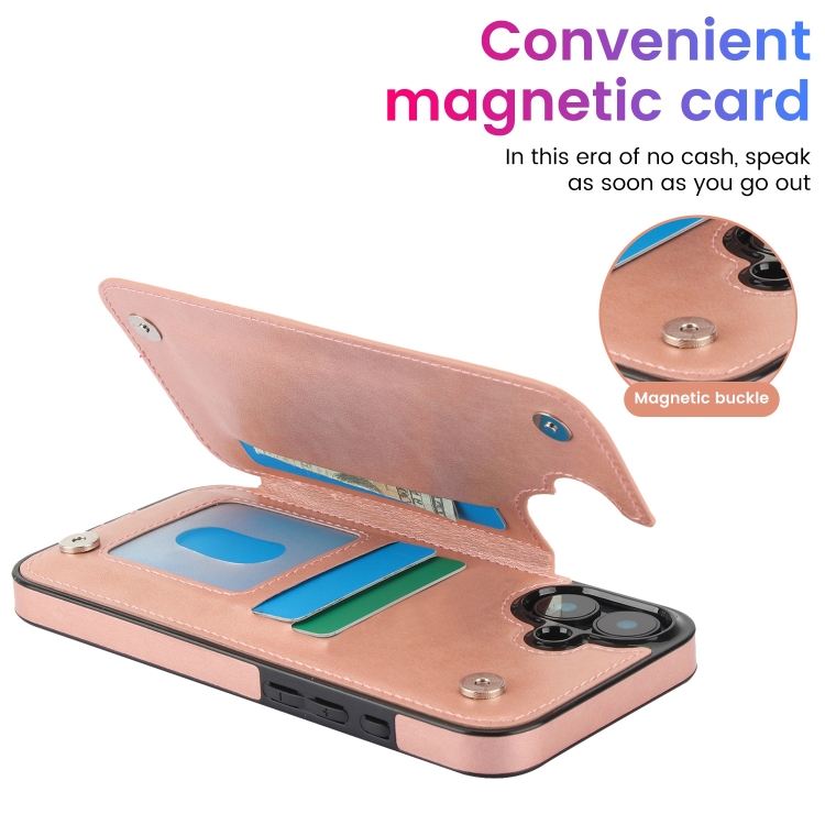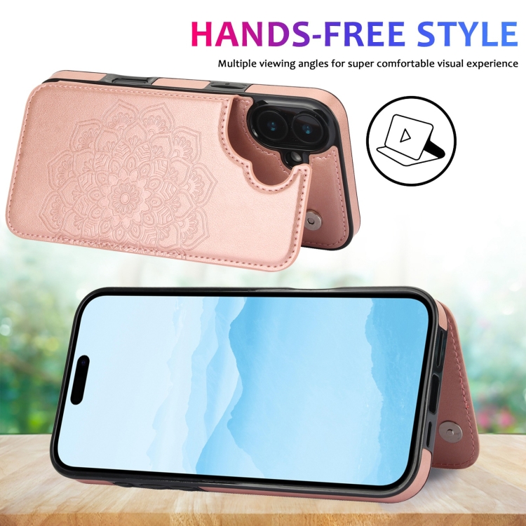 Funda Tipo Billetera Cuero con Doble Hebilla y Mandala para iPhone 16 (Oro Rosa)