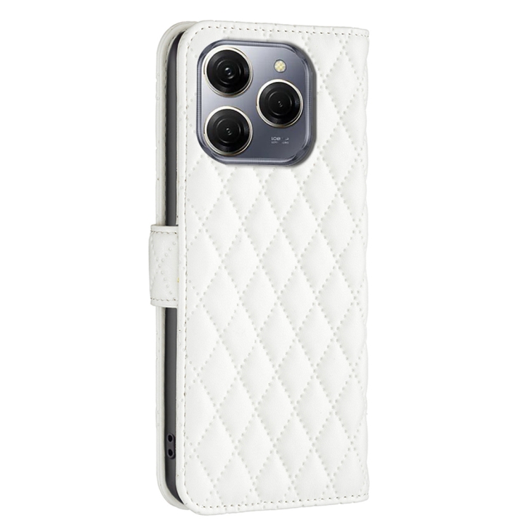 Funda de Cuero Tipo Billetera para Tecno Spark 20 Pro 5G con Tapa y Diseño Celosía (Blanca)