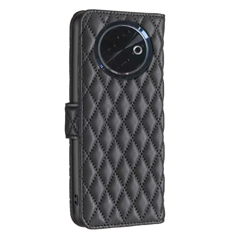 Funda de Cuero Tipo Billetera para Tecno Spark 30C con Tapa y Diseño Celosía (Negra)