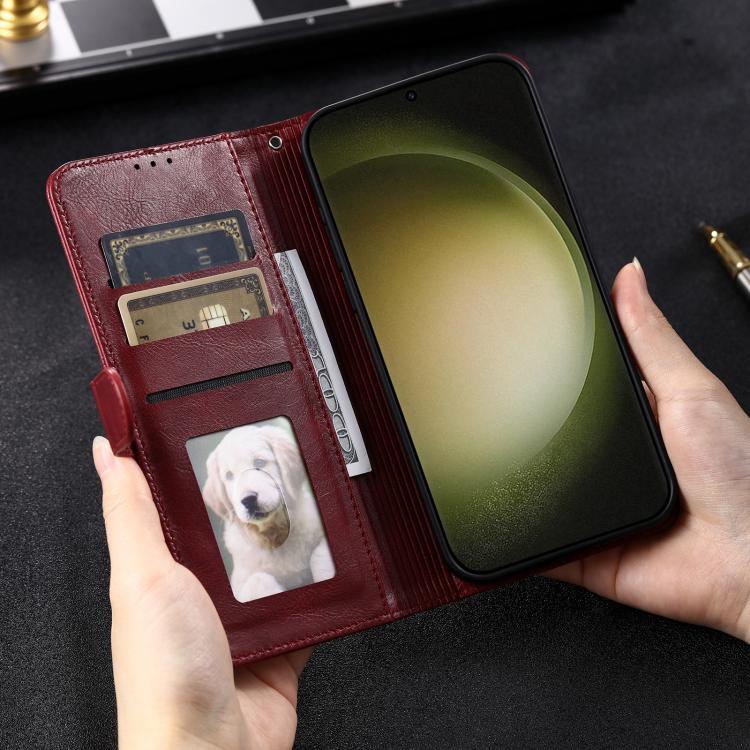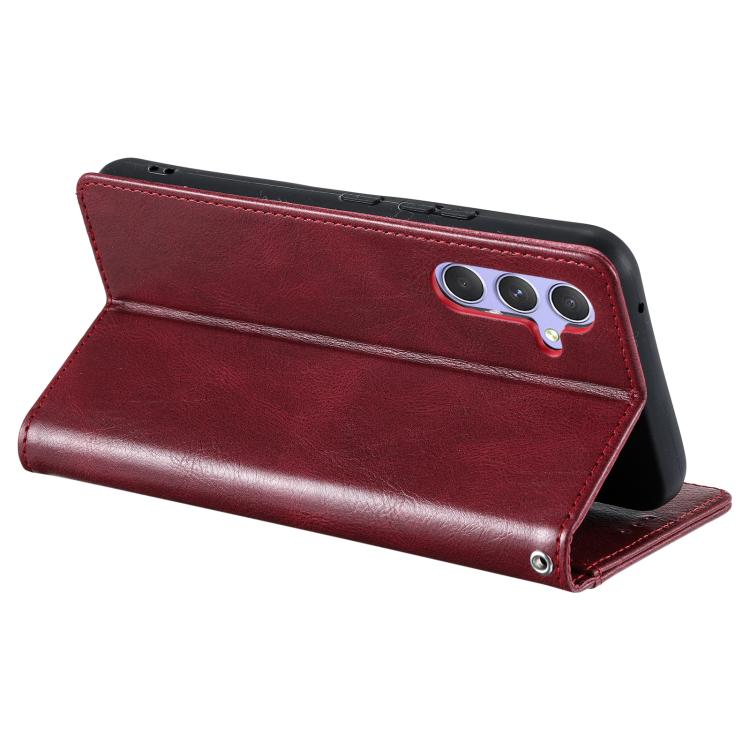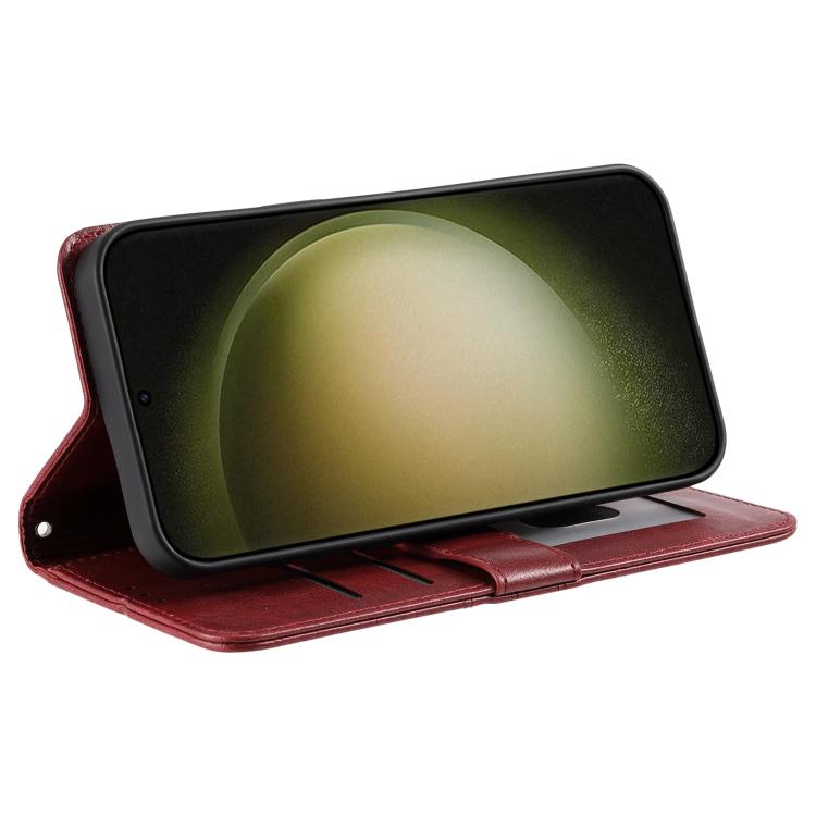 Funda de cuero tipo billetera para Samsung Galaxy A17 5G, sencilla, con capacidad para 6 tarjetas (rojo vino)