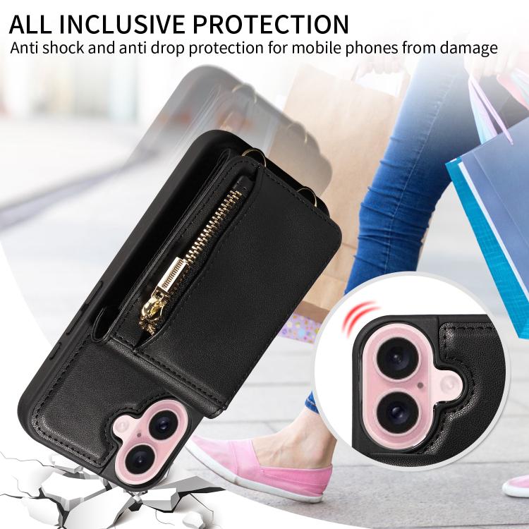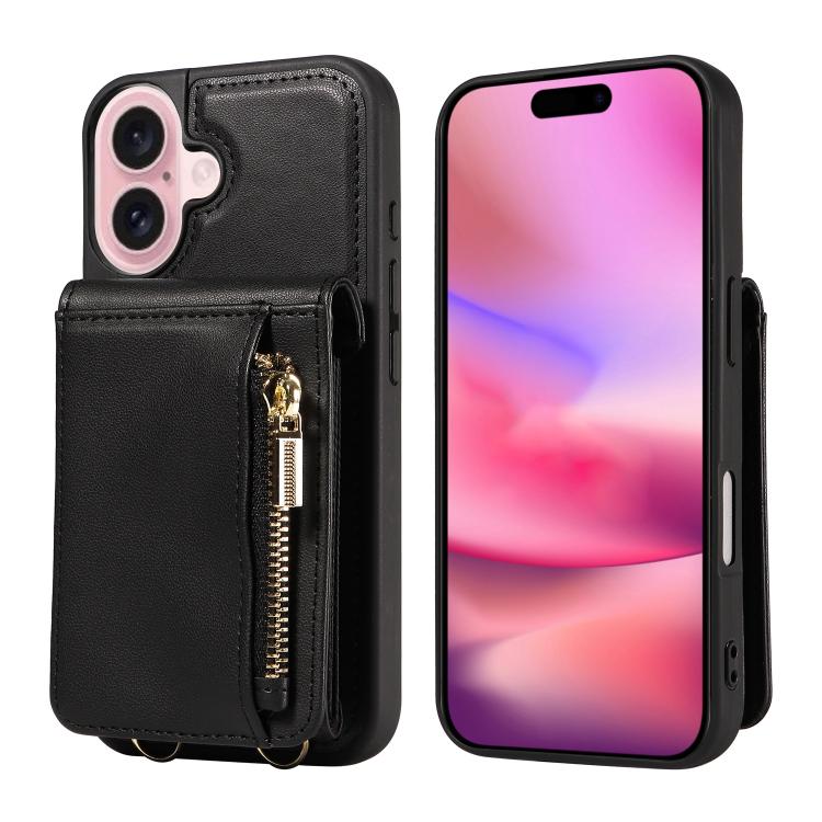 Funda de cuero tipo cartera con cremallera y cordón para iPhone 17 (negra)