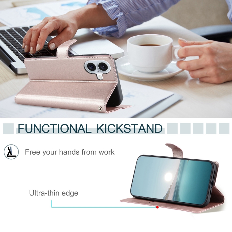 Funda de Cuero Ultrafina con Puntos Voltage para iPhone 16 Plus (Oro Rosa)