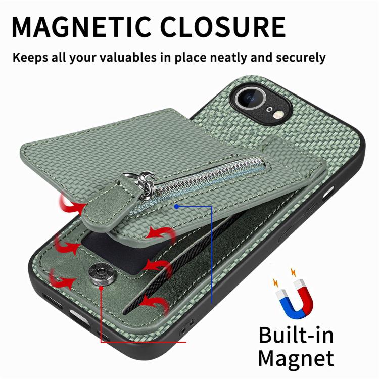 Funda de fibra de carbono con cremallera vertical para iPhone 17 (caqui)