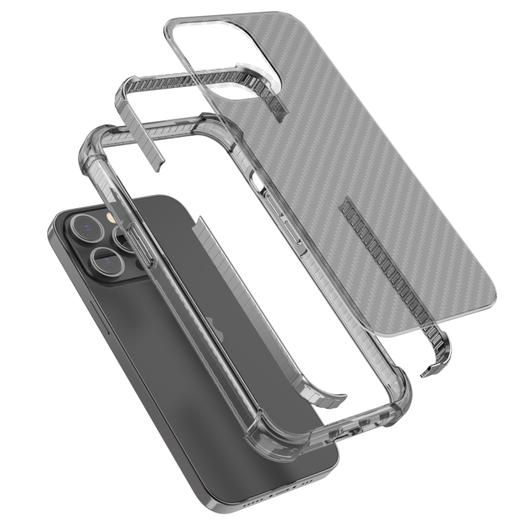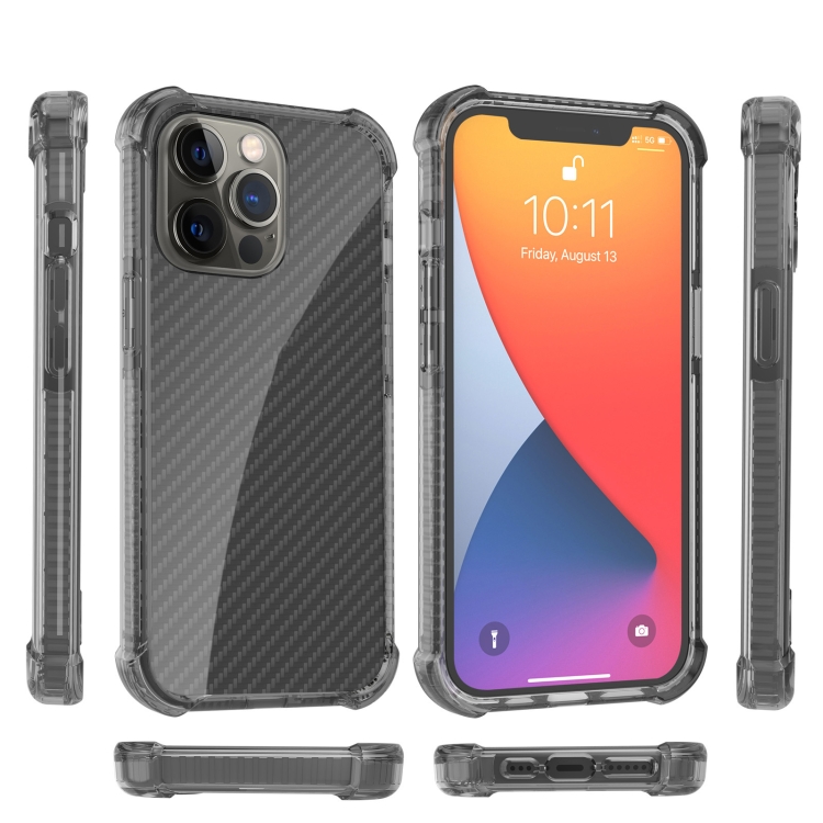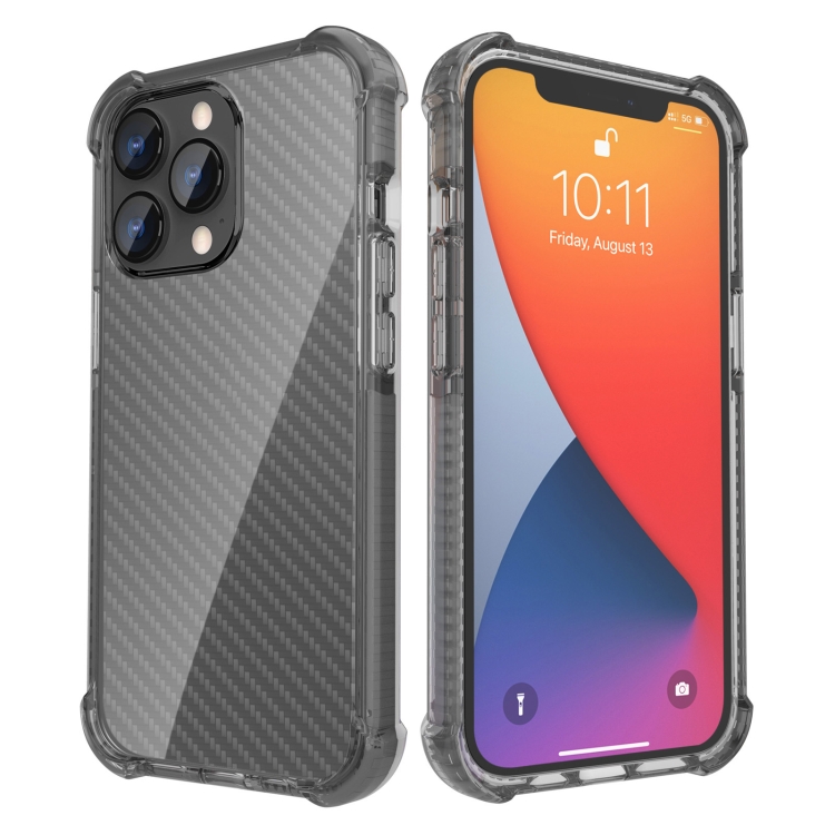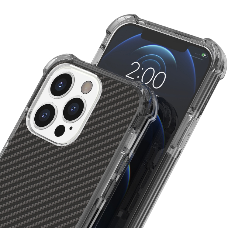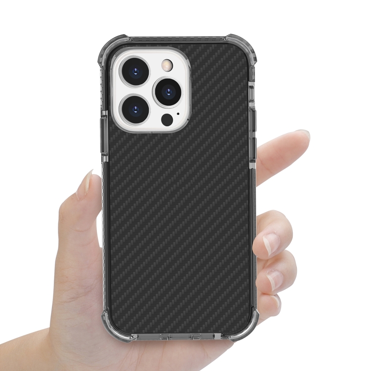 Funda Telefónica Fibra de Carbono iPhone 13 Pro a Prueba de Golpes Cuatro Esquinas (Negro)