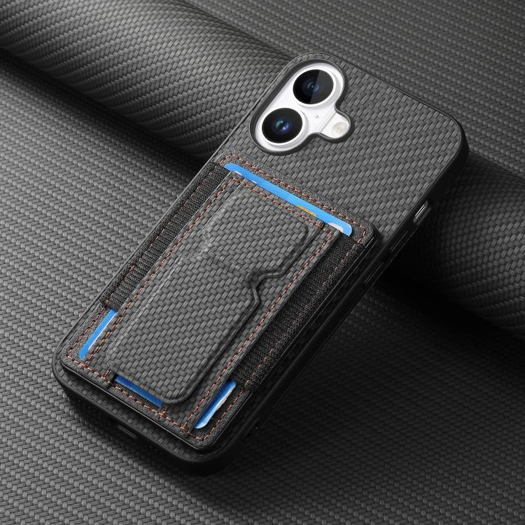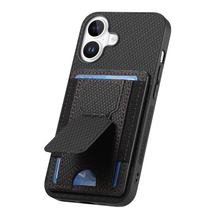 Funda de fibra de carbono plegable con soporte elástico para tarjetas para iPhone 17 (negra)