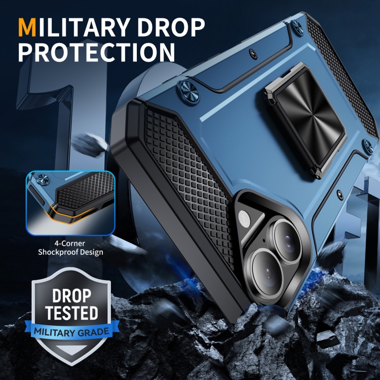 Funda para iPhone 16 Metal a Prueba de Golpes (Azul Marino)