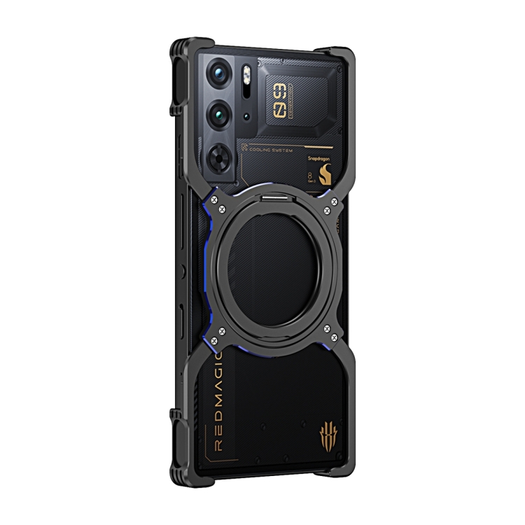 Funda de Metal para Teléfono ZTE Nubia Redmagic 9 Pro/9 Pro+ con Soporte Magsafe sin Bordes y Brazo Mecánico (Negro y Azul)