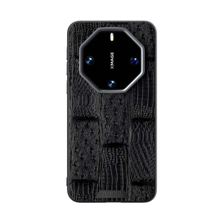 Funda de Piel Auténtica con Micrograbado 6D para Huawei Mate 60 Rs Ultimate con Diseño Abeel Beast (Negro)