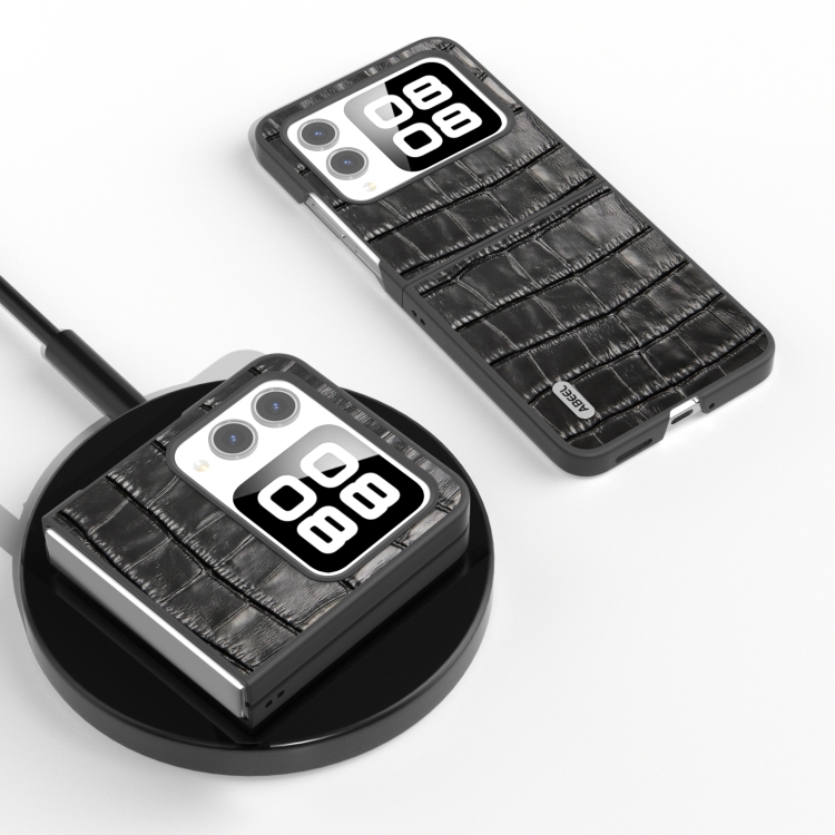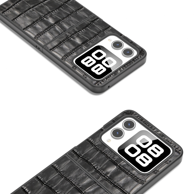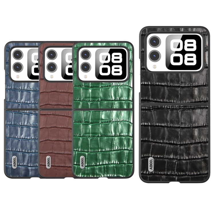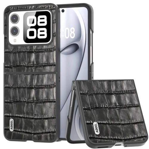 - 1x Funda de Piel Auténtica Abeel con Textura de Cocodrilo para Huawei Nova Flip (Negra)
