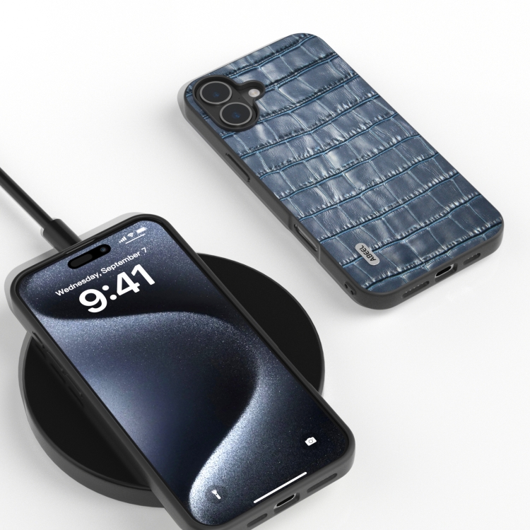 Funda para iPhone 16 Abeel Piel Auténtica Textura Cocodrilo (Azul)