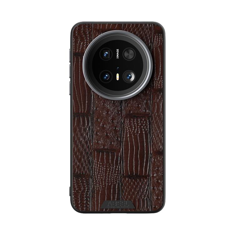 Funda de Piel Auténtica Magsafe con Micrograbado 6D Abeel Beast Pattern para Huawei Mate 70 (Marrón)