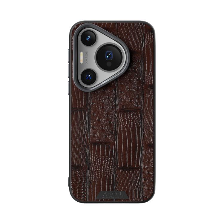 Funda de Piel Auténtica Magsafe con Micrograbado 6D Abeel Beast Pattern para Huawei Pura 70 Pro / 70 Pro+ (Marrón)