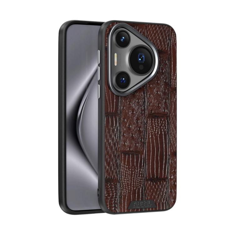 Funda de Piel Auténtica Magsafe con Micrograbado 6D para Huawei Pura 70 Abeel Beast Pattern (Marrón)