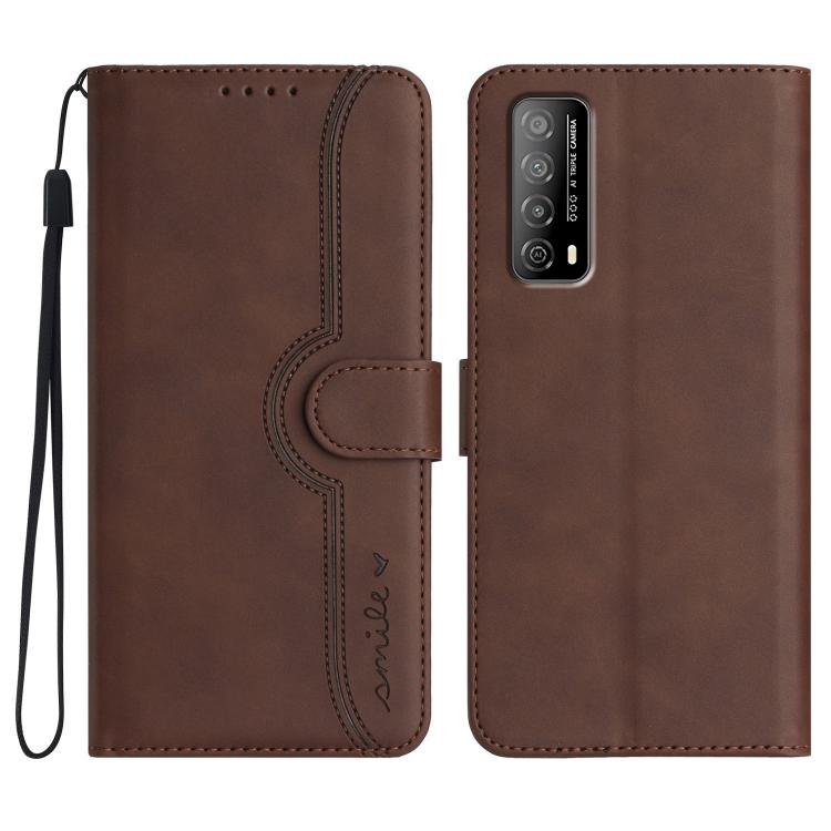 Funda de Piel con Diseño de Corazón para Huawei Enjoy 20 Se 4G (Marrón)