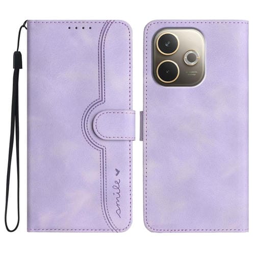 Funda de Piel con Diseño de Corazón para Oppo A5 Pro 5G (Morada)