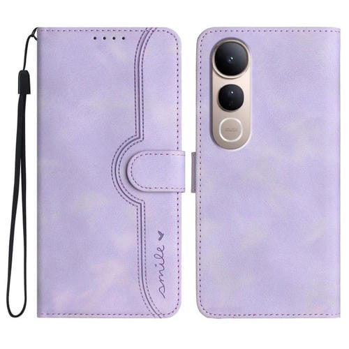 Funda de Piel con Diseño de Corazón para Vivo V50 Lite 4G/5G (Morada)