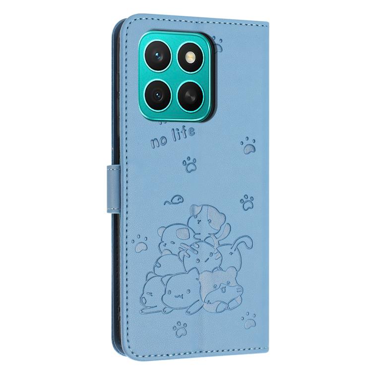 Funda de Piel para Honor X8C 4G con Diseño de Gatito en Relieve y Cordón (Azul)