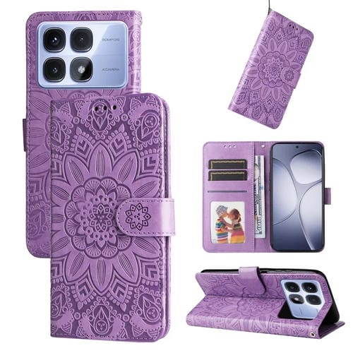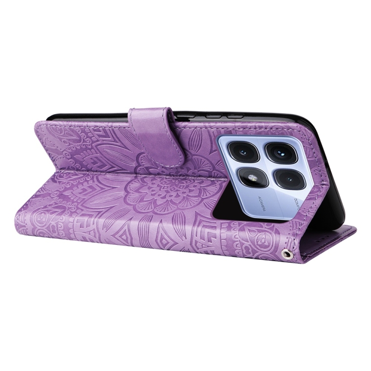 Funda de Piel con Diseño de Girasol En Relieve para Redmi K70 Ultra (Morado)