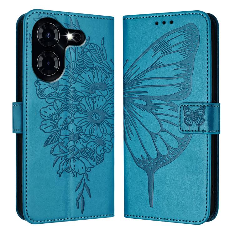Funda de piel con diseño de mariposa en relieve para Tecno Pova 5 4G (azul)
