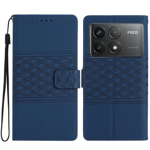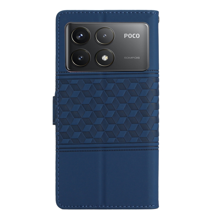 Funda de Piel con Efecto Piel En Relieve de Diamante para Xiaomi Poco F6 Pro (Azul Oscuro)