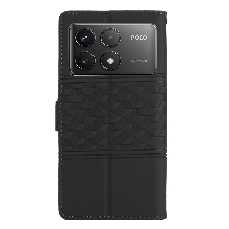 Funda de Piel con Efecto Piel En Relieve de Diamante para Xiaomi Poco F6 Pro (Negra)