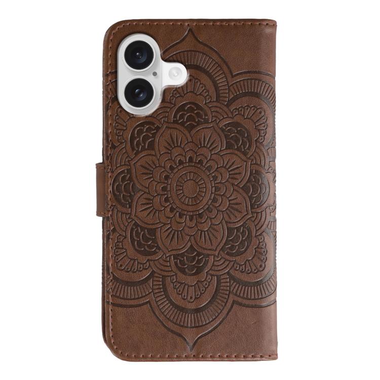 Funda de piel con estampado de mandala solar para iPhone 17 (marrón)