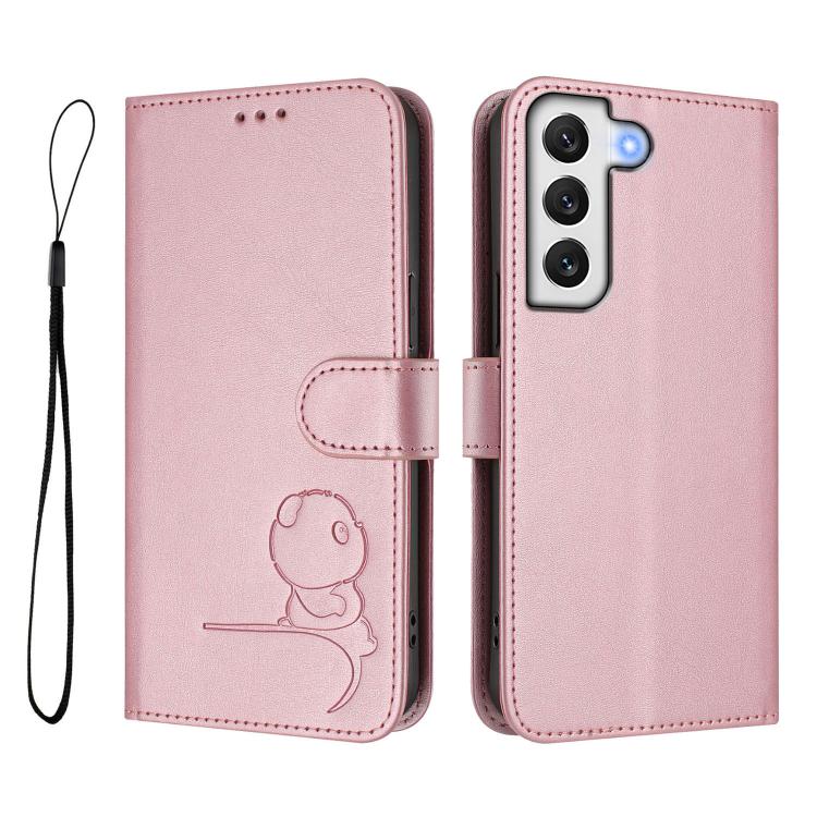 Funda de piel con estampado RFID y cordón para Samsung Galaxy S21 FE 5G (rosa)