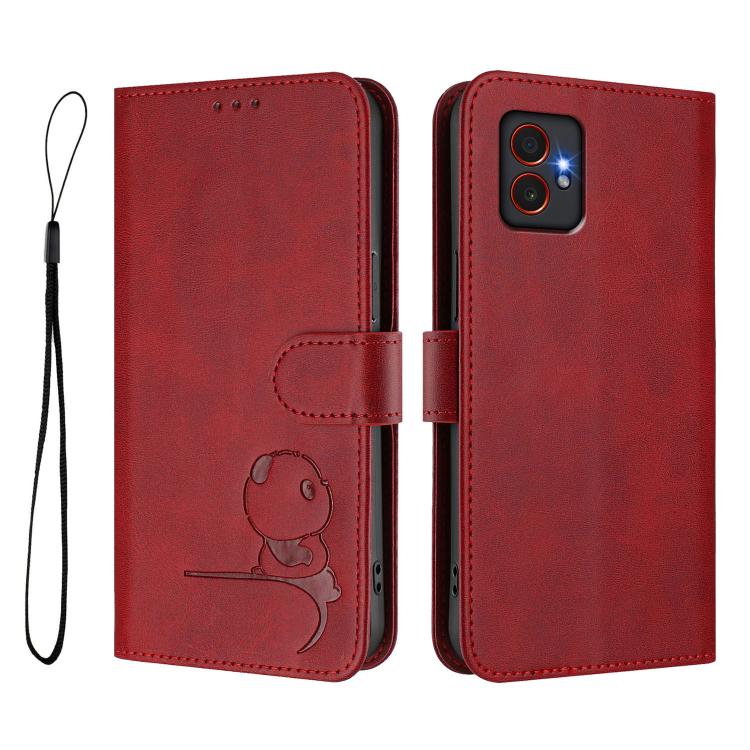 Funda de piel con grabado RFID y cordón para Samsung Galaxy XCover7 Pro (rojo vino)