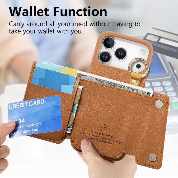 Funda de piel con hebilla en forma de D para iPhone 17 Pro Max (Marrón)