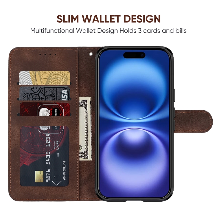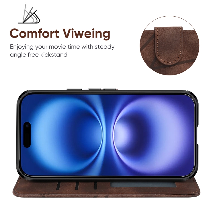 Funda de Piel iPhone 16 Líneas Geométricas Tacto Sedoso (Marrón)