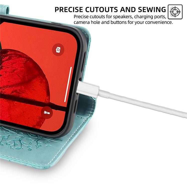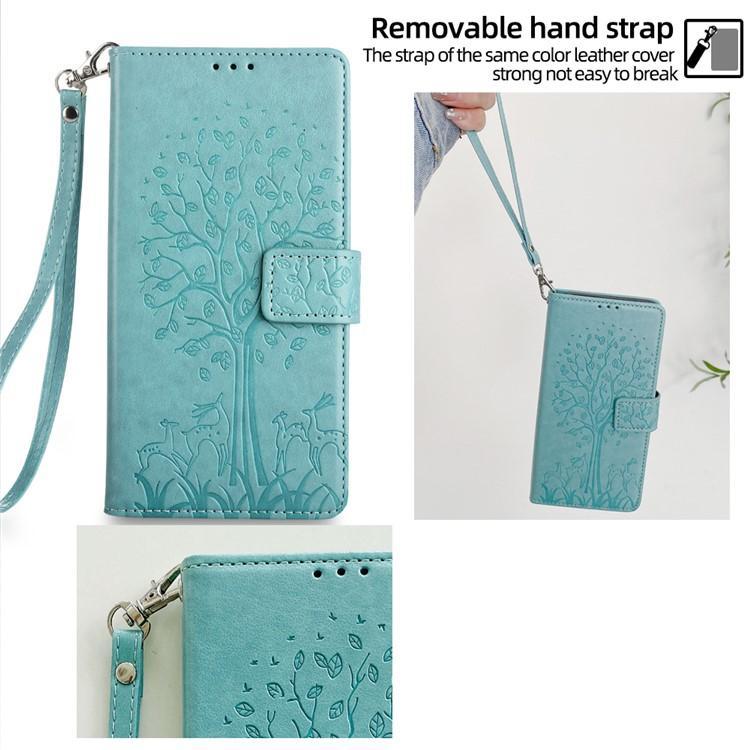 Funda de piel con relieve de árbol y ciervo para iPhone 17 (verde)