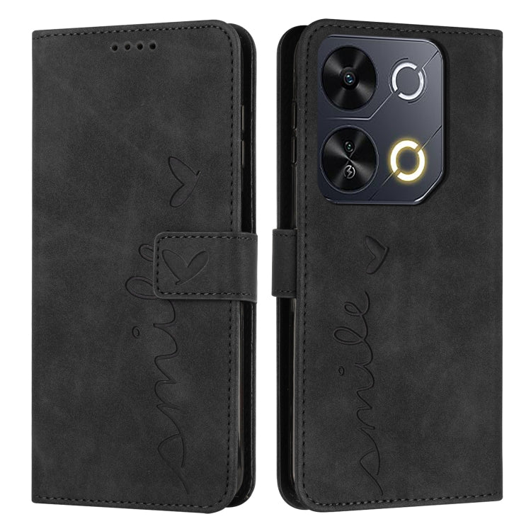 Funda de Piel con Relieve de Corazón y Cordón Largo para Teléfono Itel P65 (Negro)