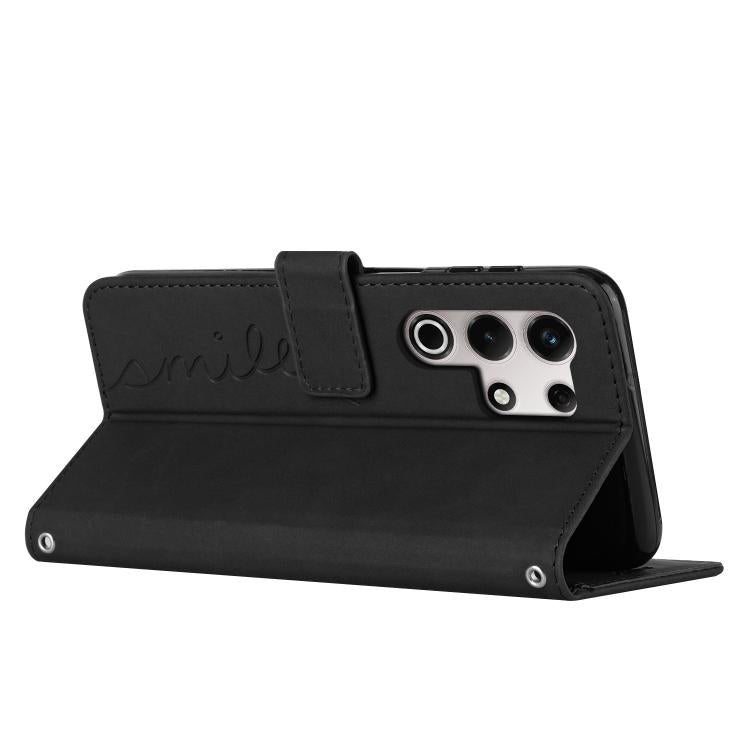 Funda de Piel con Relieve de Corazón y Cordón Largo para Itel S25 Ultra (Negro)