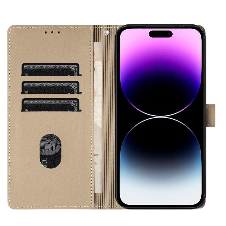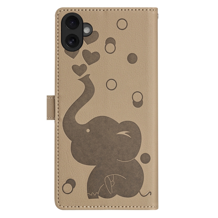 Funda de Piel para iPhone 16 con Relieve de Elefante de Dibujos Animados (Caqui)