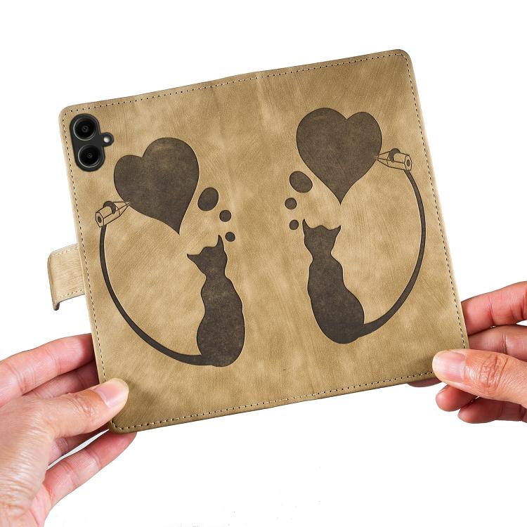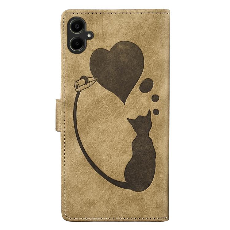 Funda de piel con relieve de gato y corazón para Samsung Galaxy A07 4G / A06 4G (albaricoque)