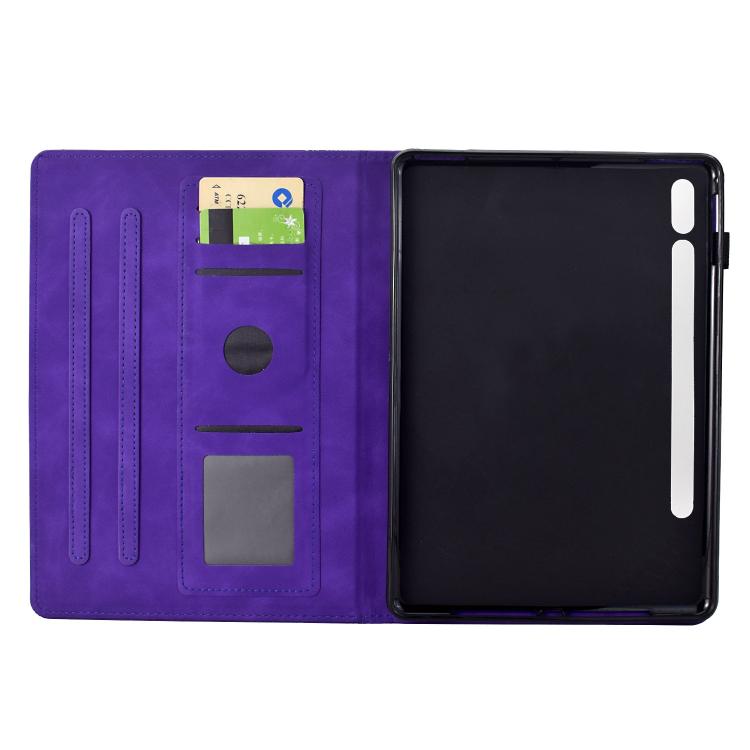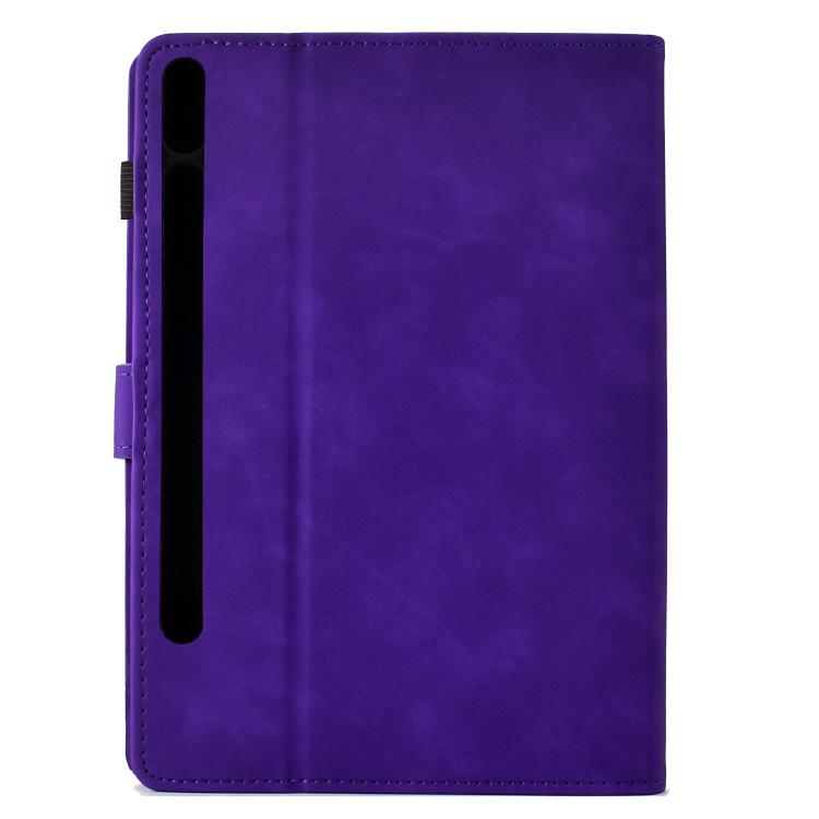 Funda de piel con relieve de gatos para Samsung Galaxy Tab S10 FE+ (morada)