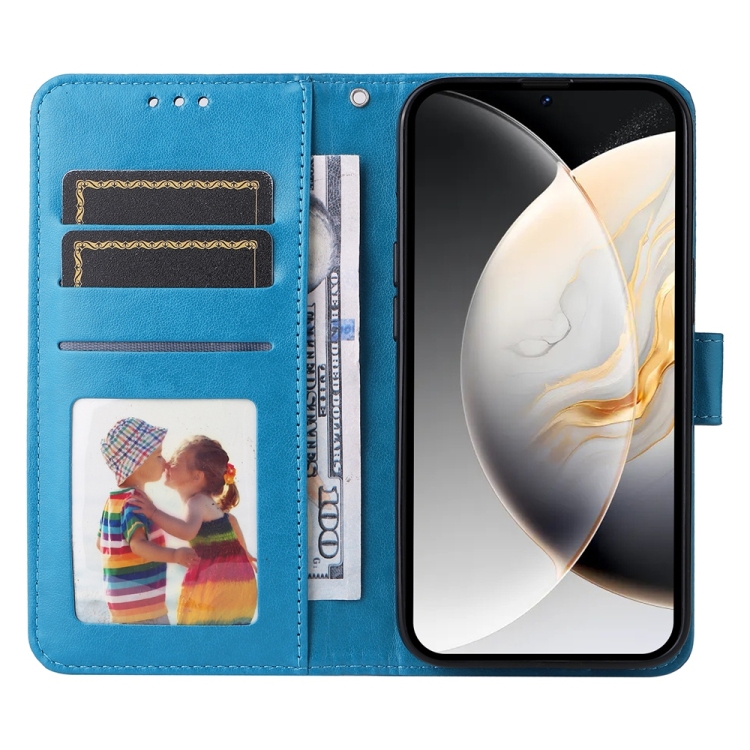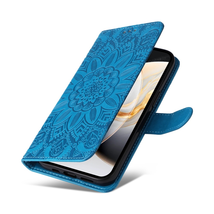 Funda de Piel con Relieve Girasol para Teléfono Tecno Camon 30 Pro (Azul)