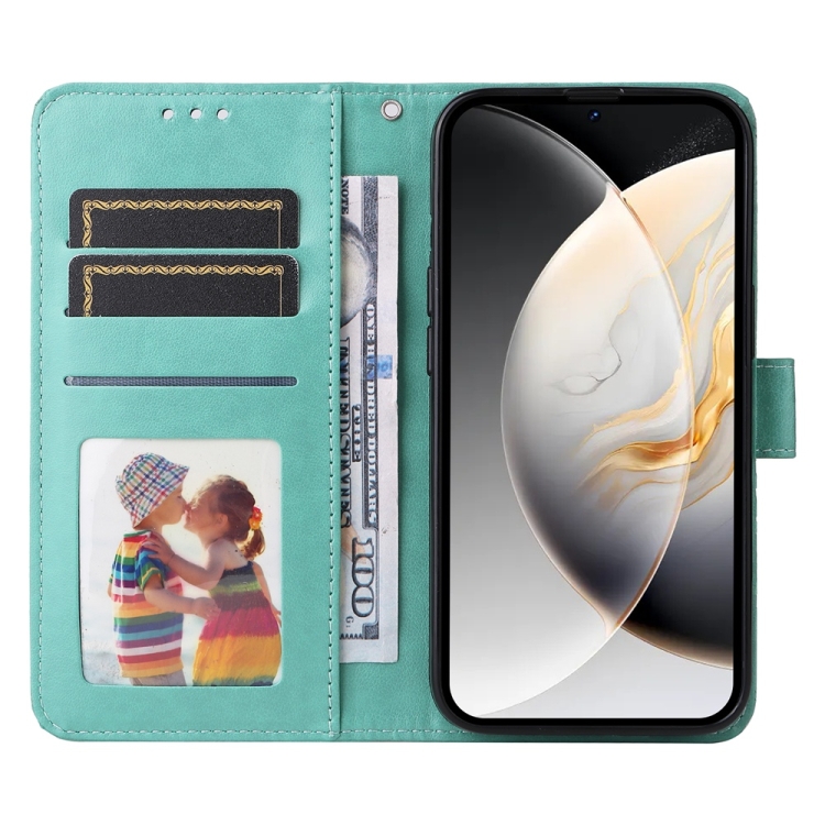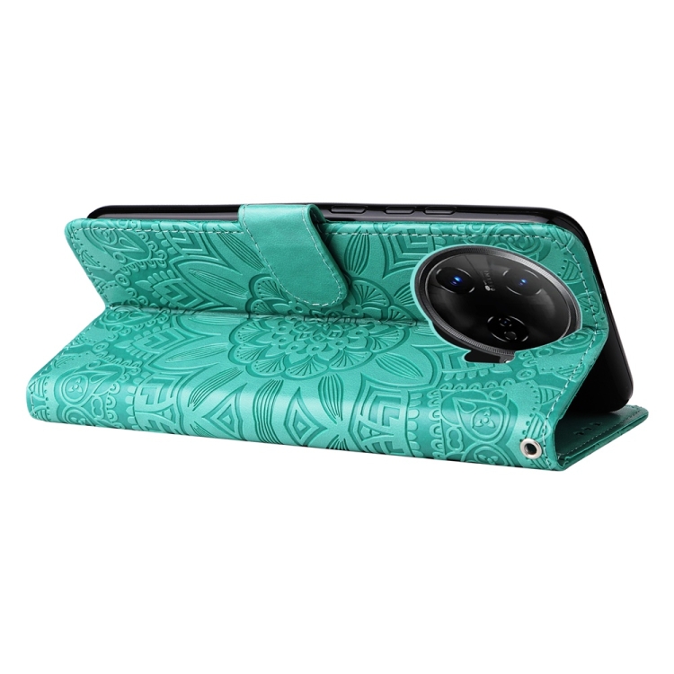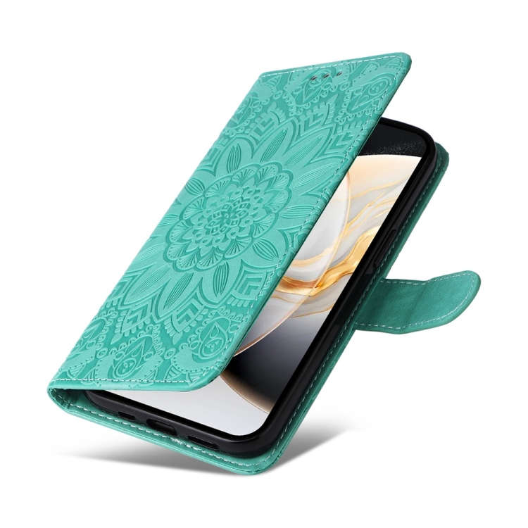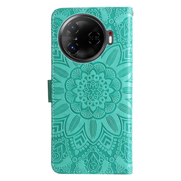 Funda de Piel con Relieve de Girasol para Teléfono Tecno Camon 30 Pro (Verde)