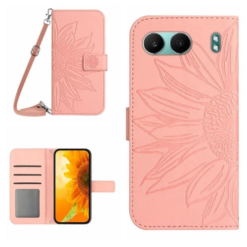 Funda de Piel con Relieve de Girasol para OnePlus Nord 4 5G (Rosa)