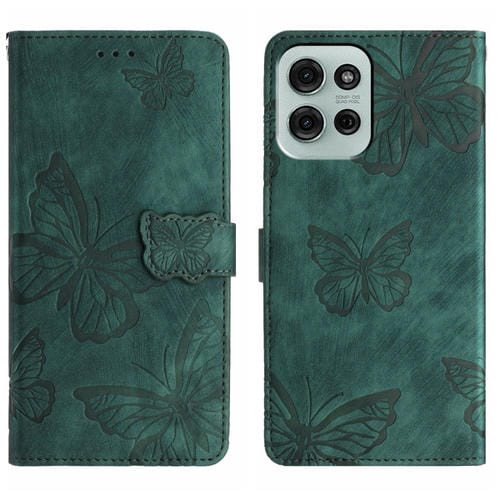 Funda de Piel con Relieve de Mariposa para Motorola Moto G75 (Verde)