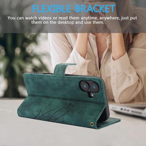 Funda de piel con relieve de mariposa y orquídea para iPhone 17 (verde)